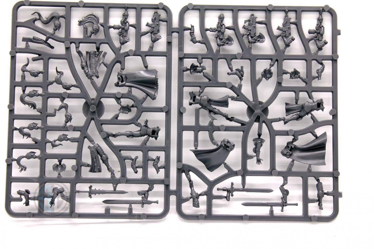 This multi-part plastic kit contains the parts necessary to assemble a 5-model Vigilator Squad, melee specialists who carry executioner greatblades.One model can be assembled as a Sister Superior, with her own specially-posed greatblade, loincloth, shoulder pad, seal and choice of 2 heads. The kit can be optionally be assembled as Prosecutors, who operate more flexibly and carry bolters for longer-range combat and Witchseekers, who carry flamers for devastating multi-target assaults. It includes 6 executioner greatswords, 5 Umbra-pattern boltguns and 5 flamers.
