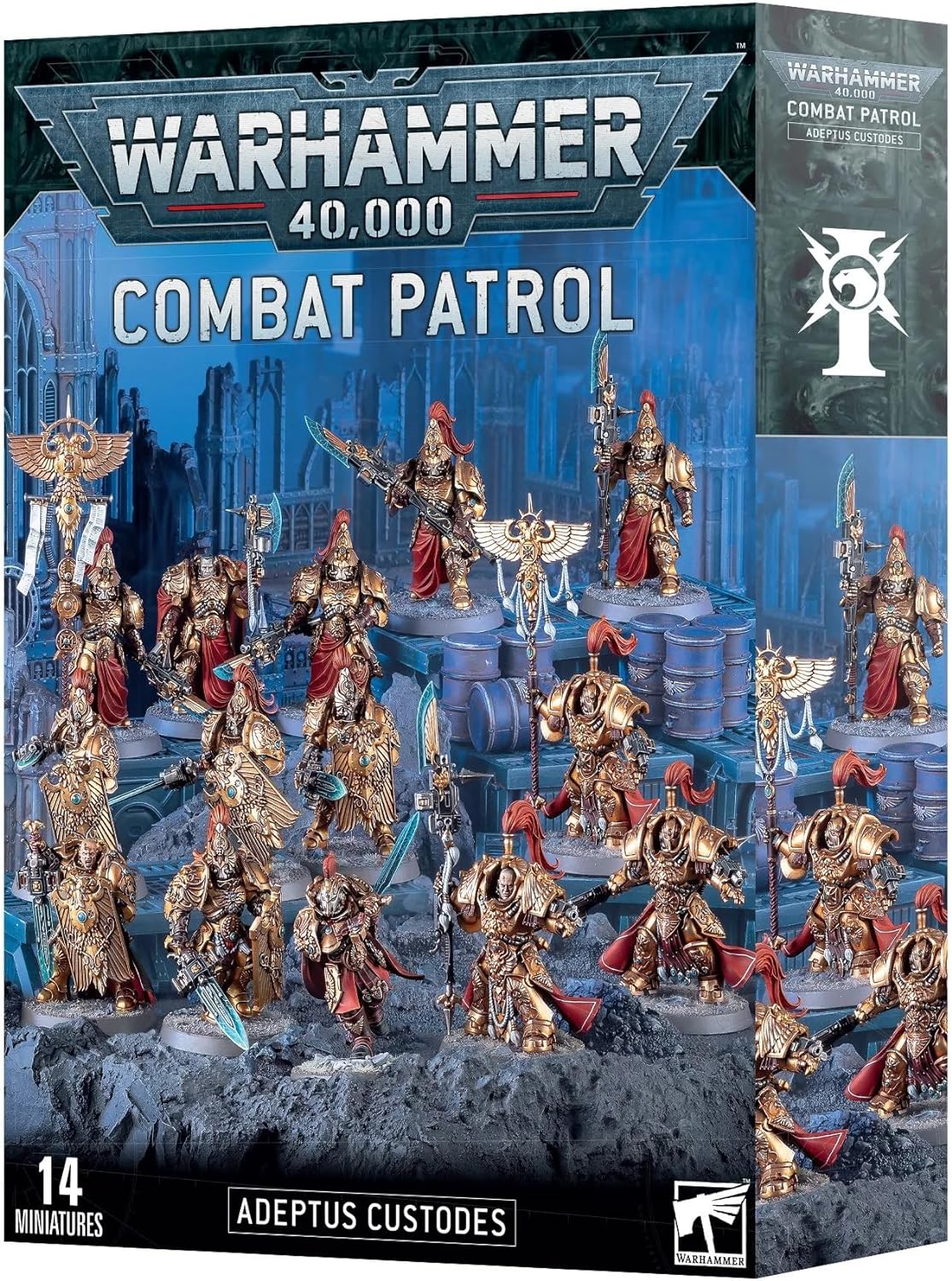Combat Patrol: Adeptus Custodes gives you the means to persecute the enemies of the Throne with extreme prejudice in fast-paced games of Warhammer 40,000. It contains all the units you’ll need to start a new army of gleaming golden warriors, or massively expand your existing collection with essential units. It also saves you money over buying each kit individually. This balanced force includes a leader, a stalwart unit of Custodian Guard, a veteran unit of Custodian Wardens, and an extra elite unit of Terminator Armour-clad Allarus Custodians, giving you a full force for Combat Patrol games.