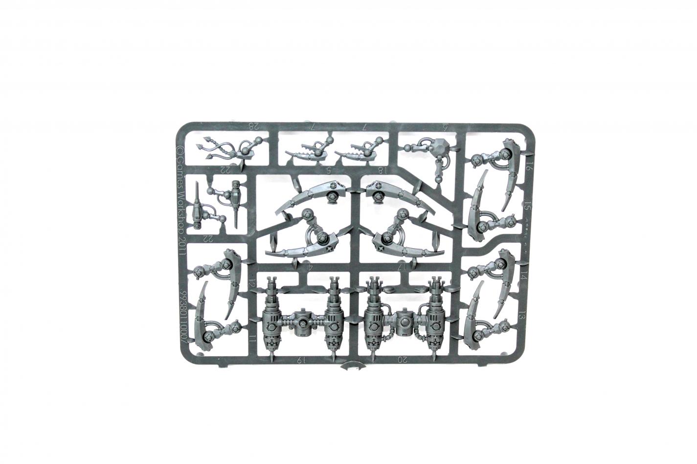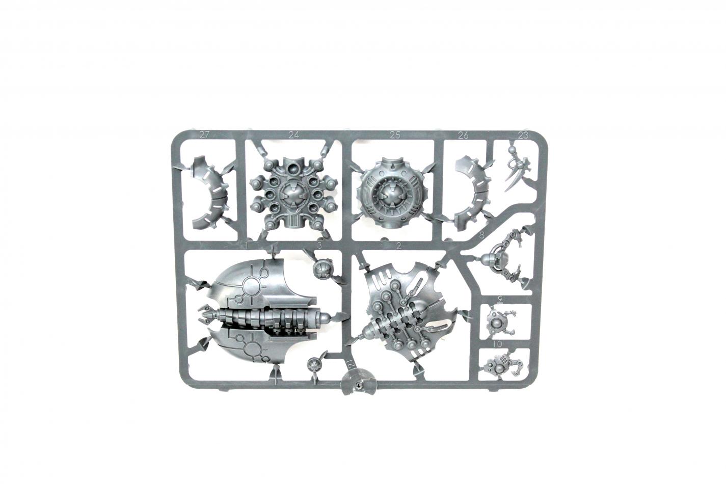 Though the Canoptek Spyder is essentially an automated drone, it is still a formidable foe when the situation demands. This multi-part plastic boxed set contains 30 components with which to build one Necron Canoptek Spyder. This kit comes with two ball socket stems and one large flying base.